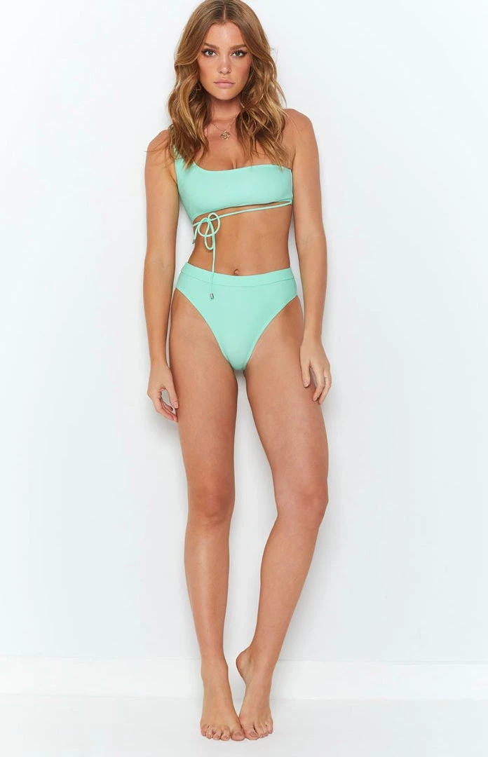 Summer is creeping in and so is the heat, so why not slip into the 9.0 Swim x Ariella Aquata Asymmetrical Bikini Top Mint Green to make your next beach trip come alive! This fresh aqua swim top features a straight across neckline and a non-adjustable strap over the one shoulder in a vibrant comfortable fabric. Complete this look with the Aquata High Waisted Bikini Bottoms for your next vacay!