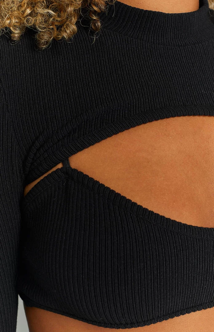 - Black Long Sleeve Rib Top