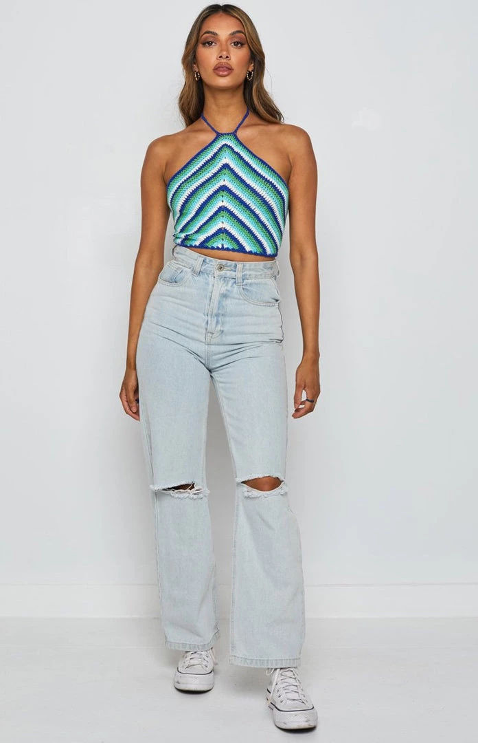 - We’re saying HELLO to summer in this bold ‘n beautiful crochet halter top. Simply style with shorts and wavy beach curled hair for the ultimate summery look