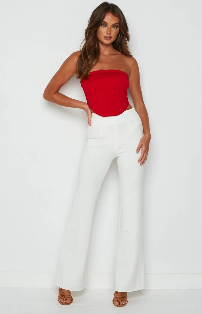 - This stunning red corset is perfect to wear to your next holiday season fam dinner! Simply style with white pants and heels and a matching bold red lip to complete your look!