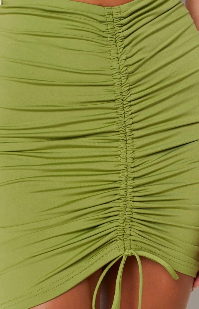 BB Exclusive Bottoms Ginny Ruched Mini Skirt Green