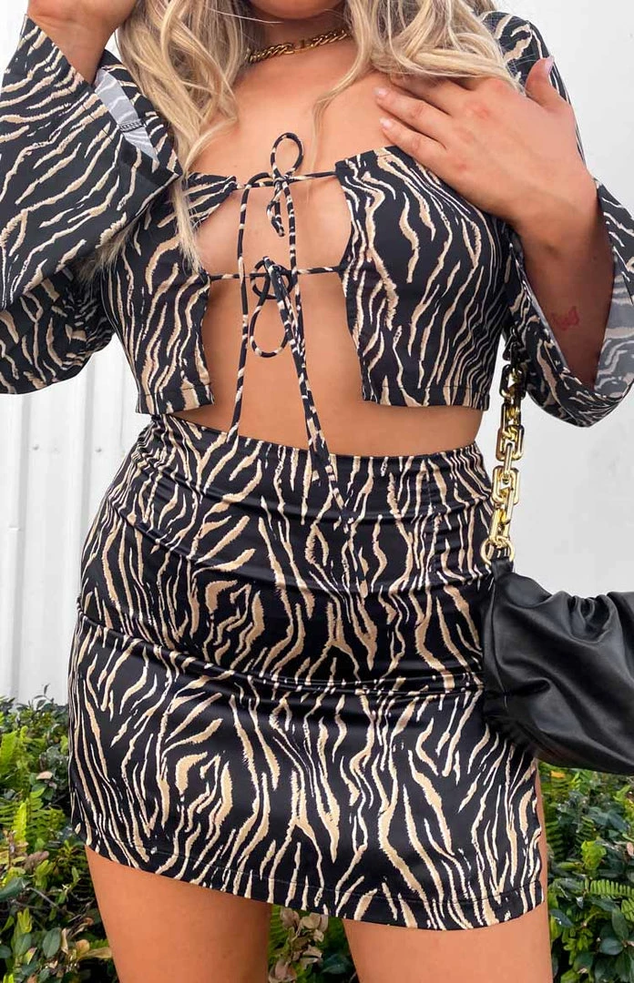 - We are loving this subtle zebra print mini skirt! It will look amazing on your next night out or at a festival paired with the matching Luna Tie Top!