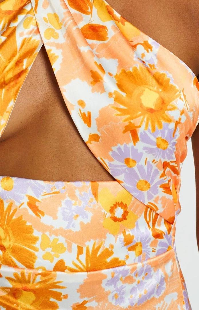 BB Exclusive Brooke Orange Floral Halter Mini Dress Dresses