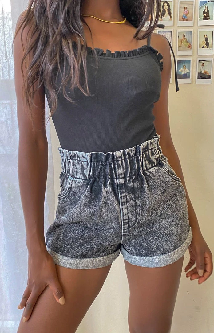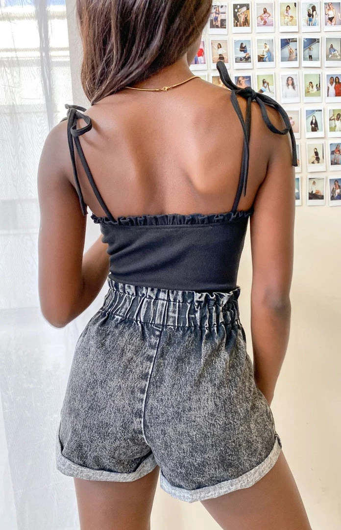 These paperbag style denim shorts are a great go-to for the weekend with a simple crop!