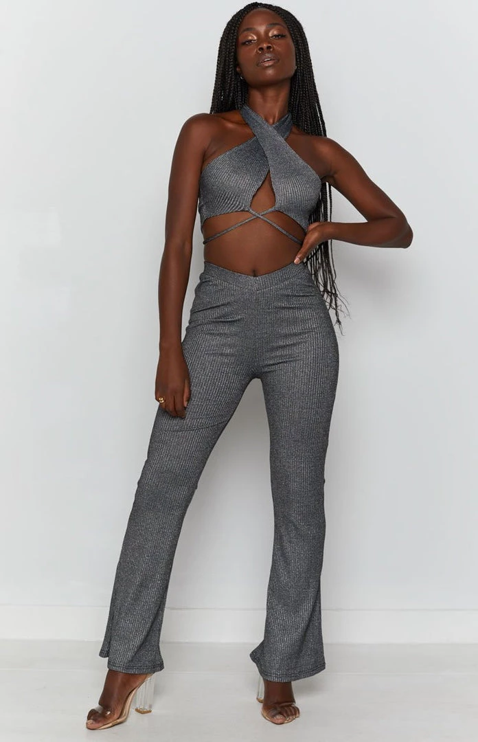 - Stand out in silver girl! These pants scream major 80s vibes, and we wouldn’t have it any other way – pair with the matching crop top for the ultimate silver girl outfit
