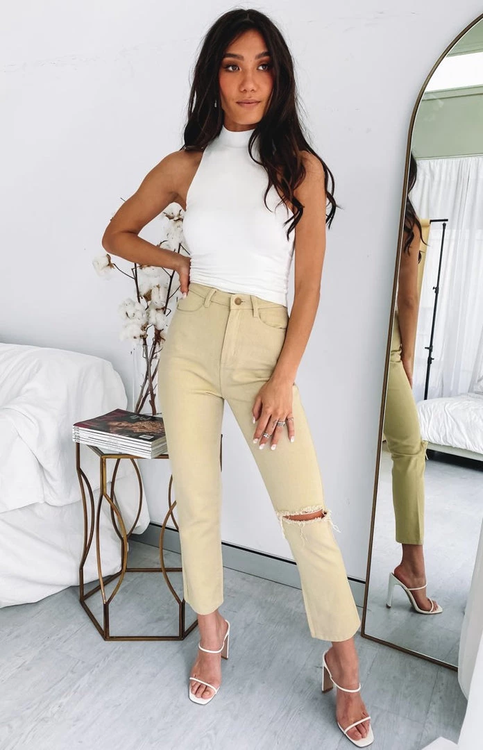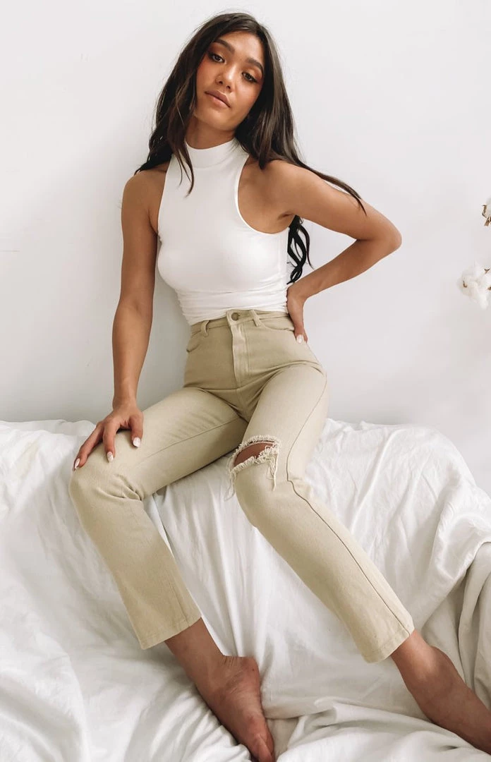 Our new Della Jeans in Beige are ti die for this winter season! Wear it as a soft and effortless look with some slides or sneakers