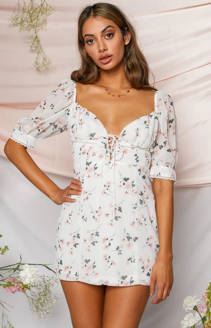 - Floral Lace Up Mini Dress