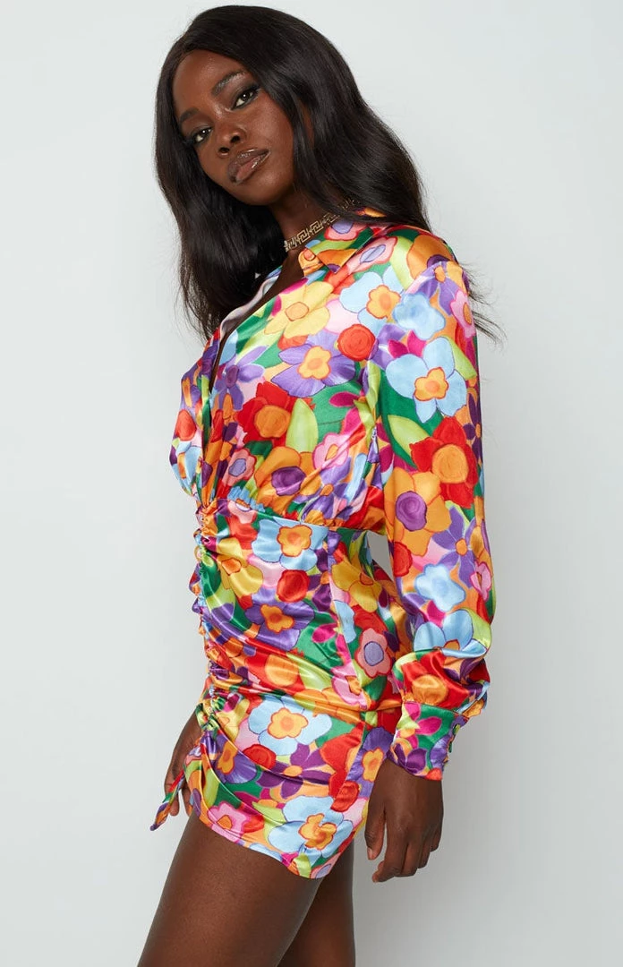 BB Exclusive Dresses Lover Satin Shirt Dress Multi Floral