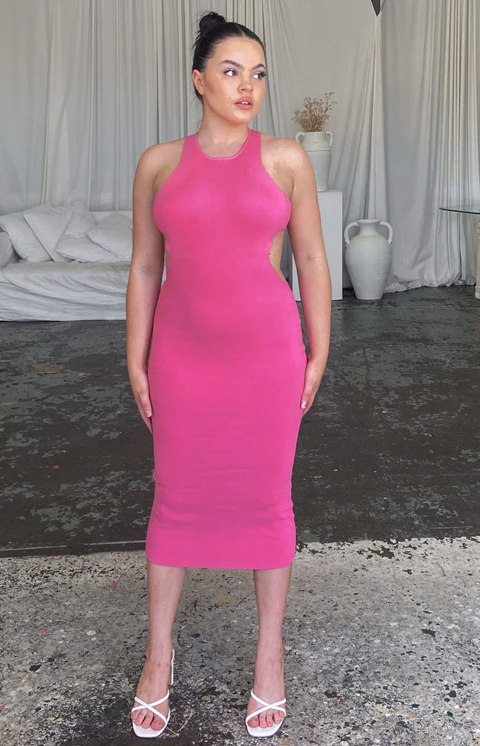 - Pink Backless Midi Dress