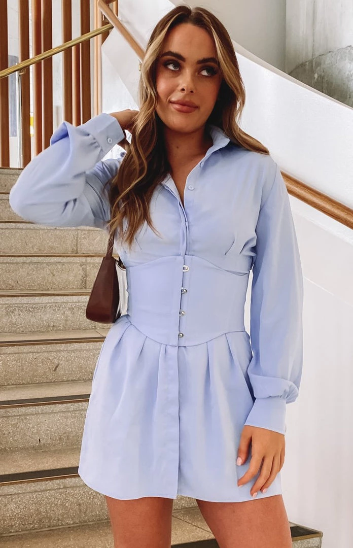 - Blue Mini Shirt Dress