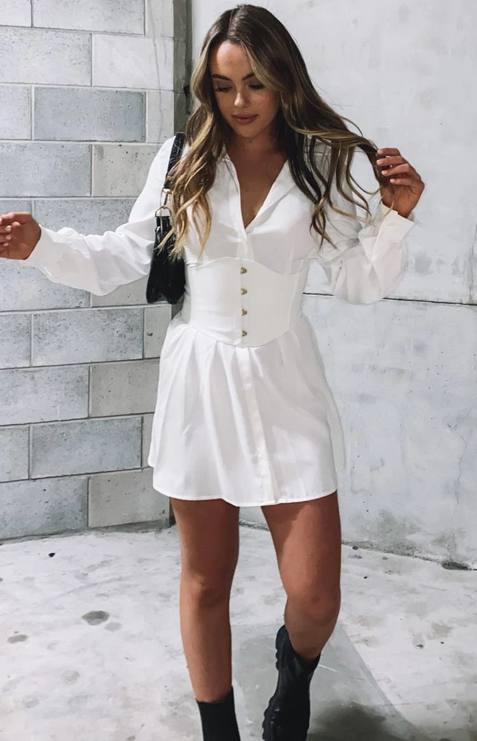 BB Exclusive Dresses Social Mini Shirt Dress White
