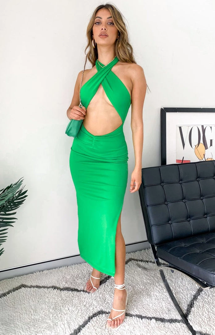 BB Exclusive Dresses Sofia Halter Midi Dress Green