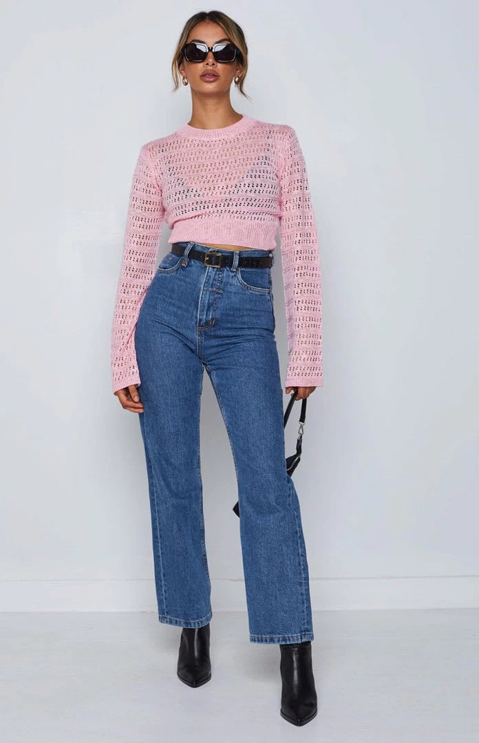 - We adore this super cute knit sweater. Pair with high waisted jeans and sneakers for a cute and chic look!