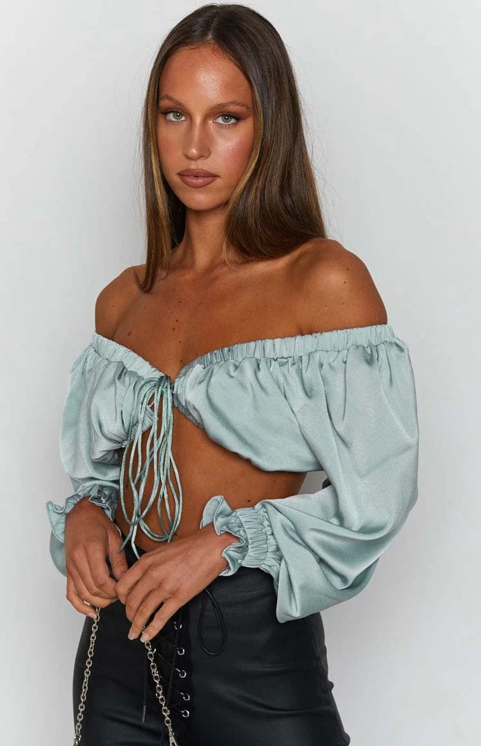 - Long Sleeve Sage Crop Top
