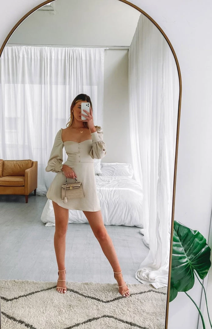 BB Exclusive Goodbye Long Sleeve Mini Dress Champagne Dresses