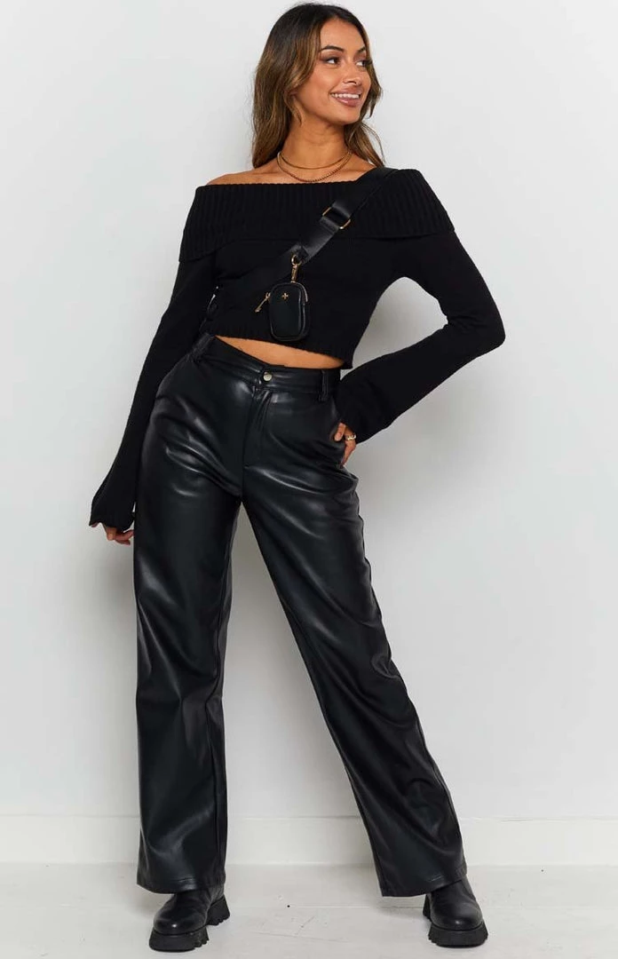 BB Exclusive Marci Off Shoulder Sweater Black Long Sleeve Tops
