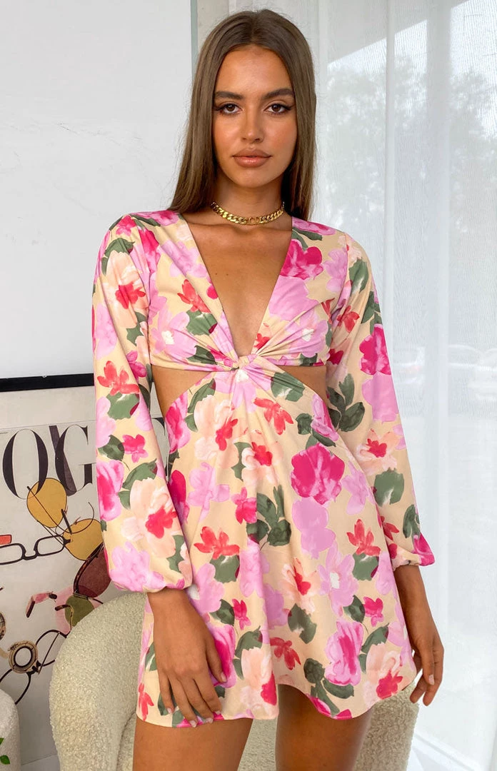 BB Exclusive Mars Twist Mini Dress Yellow Floral