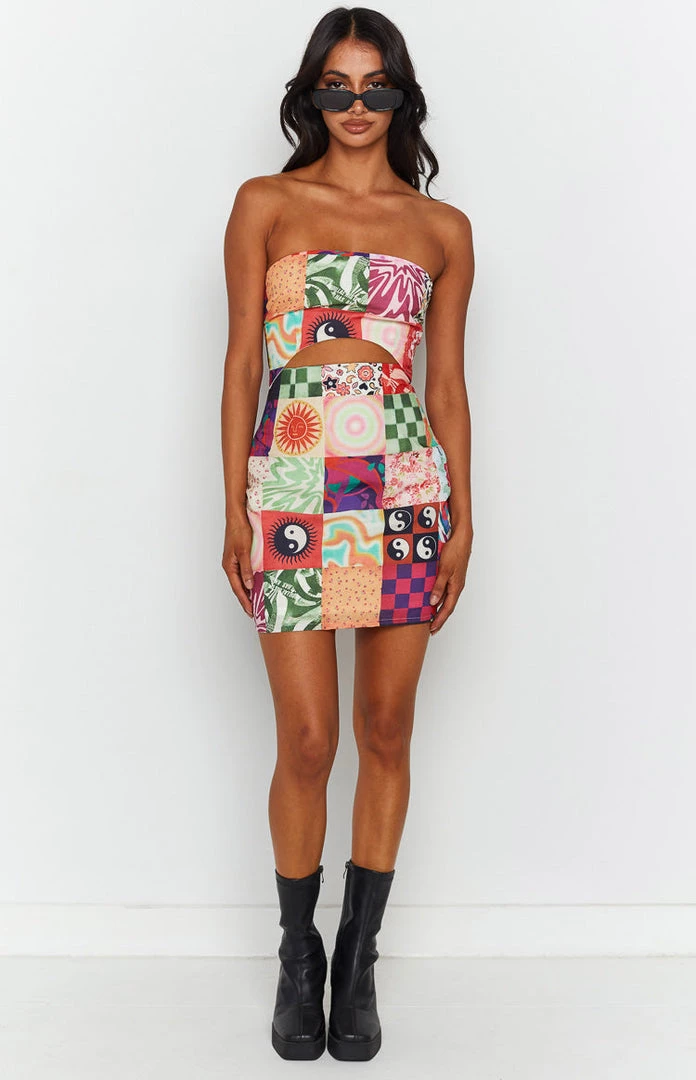 - Multi Print Strapless Mini Dress