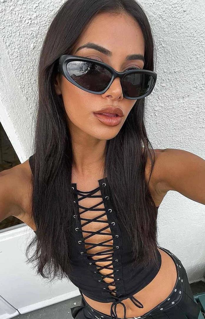 BB Exclusive Nicola Black Lace Up Mesh Top