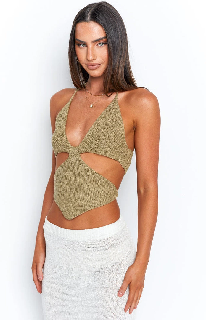 BB Exclusive Opal Khaki Cut Out Crop Top Tops