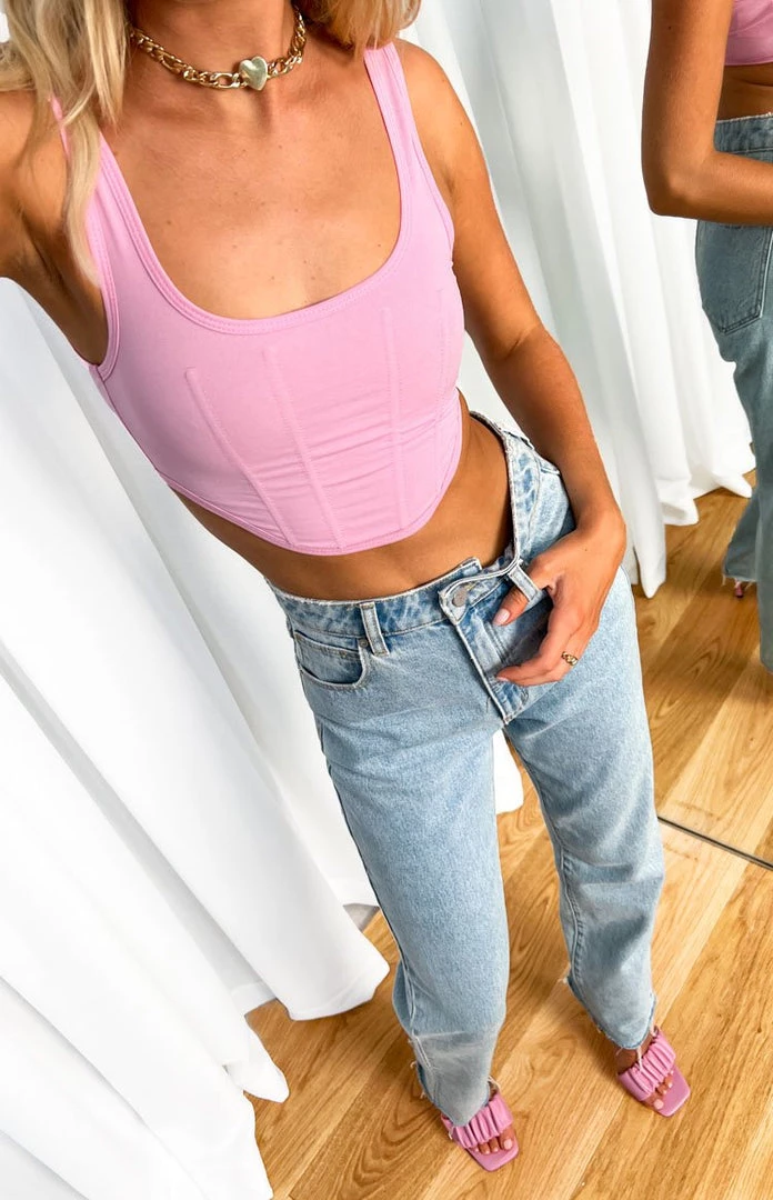 - Brunch with the girls just got better with this cute AF pink corset top! Simply pair with jeans and white sneakers for an effortlessly stylish look