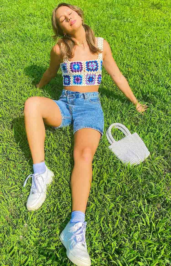 - The cutest crochet top is a must have for your festival wardrobe. Wear yours with a mini skirt and sneakers or dark blue denim and heels.