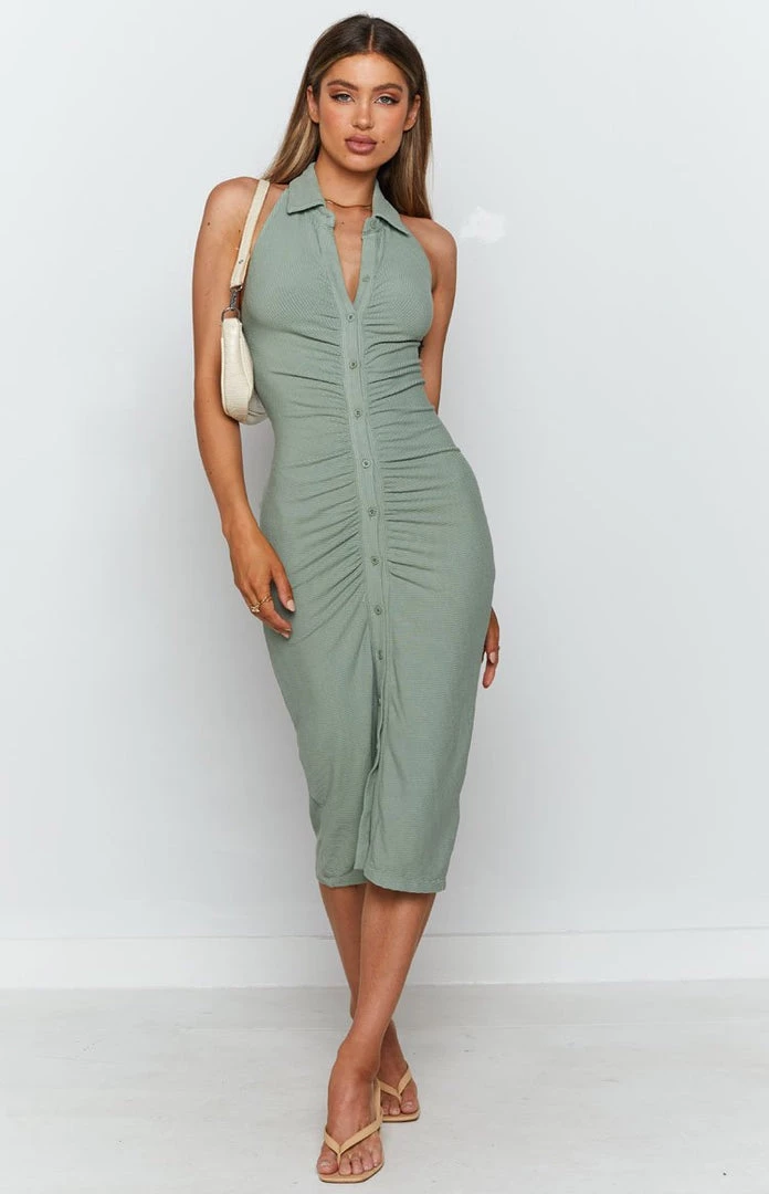 BB Exclusive Sierra Ruched Midi Dress Sage Dresses