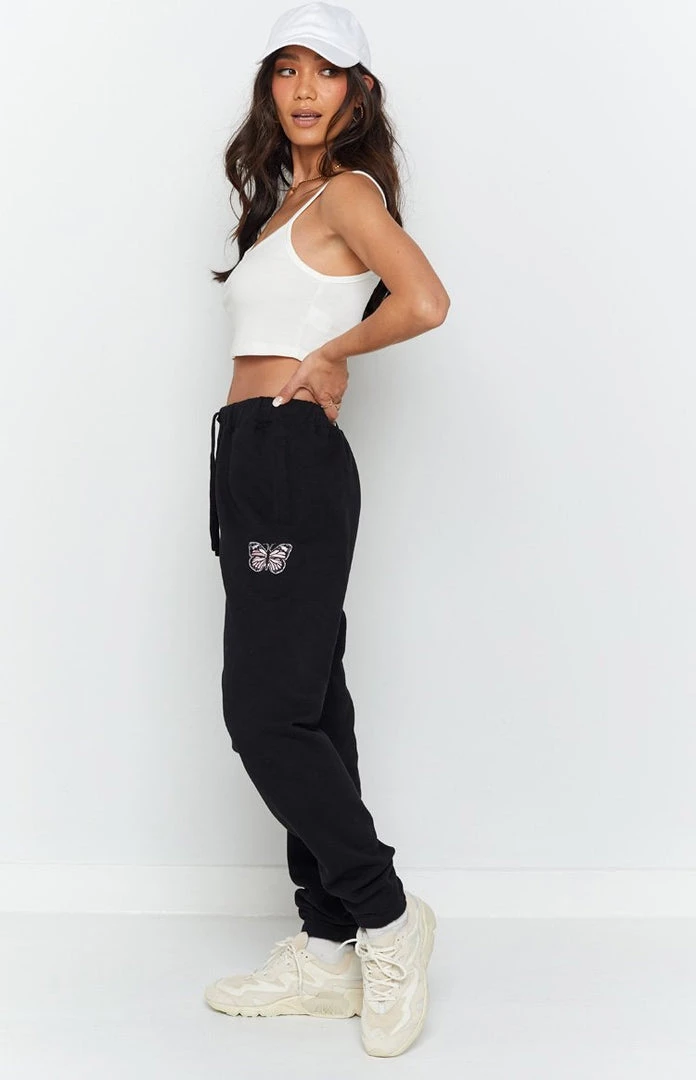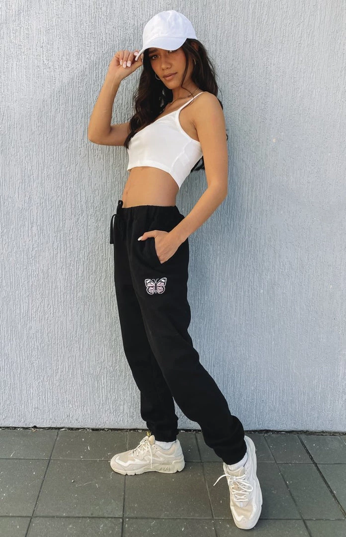 Cool and casual in the Stormi Butterfly Trackpants Black. Our fave butterfly graphic now comes in the outfit of the season – sweatpants! Wear them with a basic top or matching hoodie.