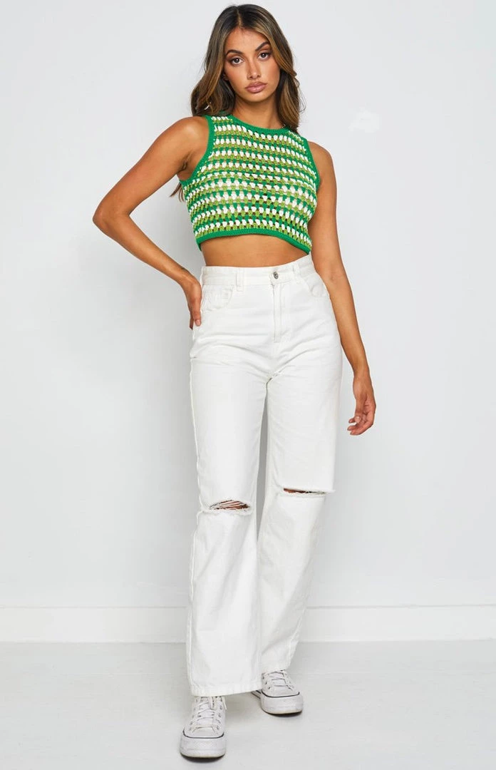 - Such a versatile crop, you’ll be wearing this knit all year long! Pair with white jeans in winter or denim shorts for a hot summer look!