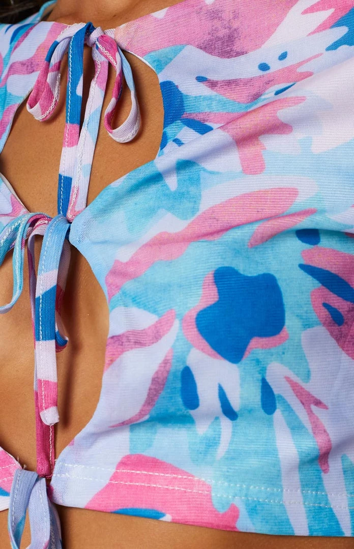 BB Exclusive Tops Shaula Pink Front Tie Mesh Top
