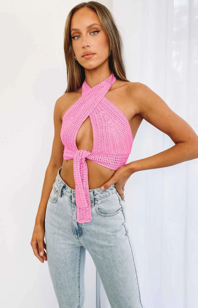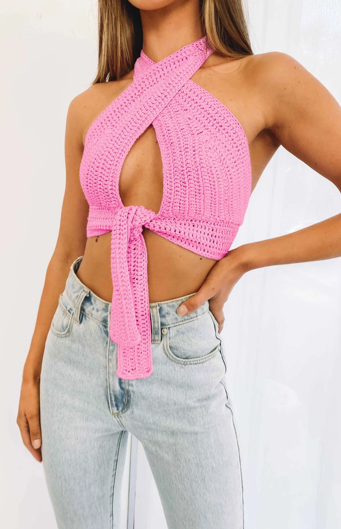 - Pink Crochet Crop Top