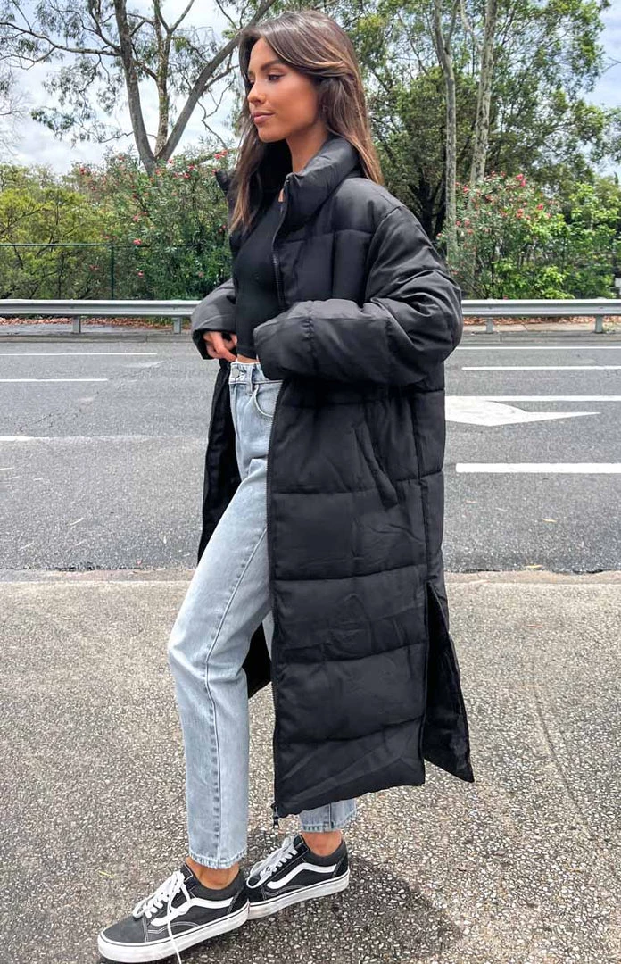 - Bring this puffer jacket will keep you warm and cosy. Wear it with jeans and Doc’s to complete your look, or you can even add a belt to accentuate your waist!