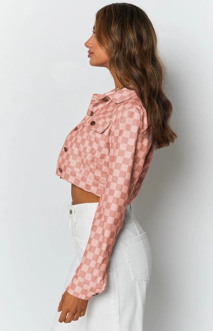 - Pink Check Cropped Jacket