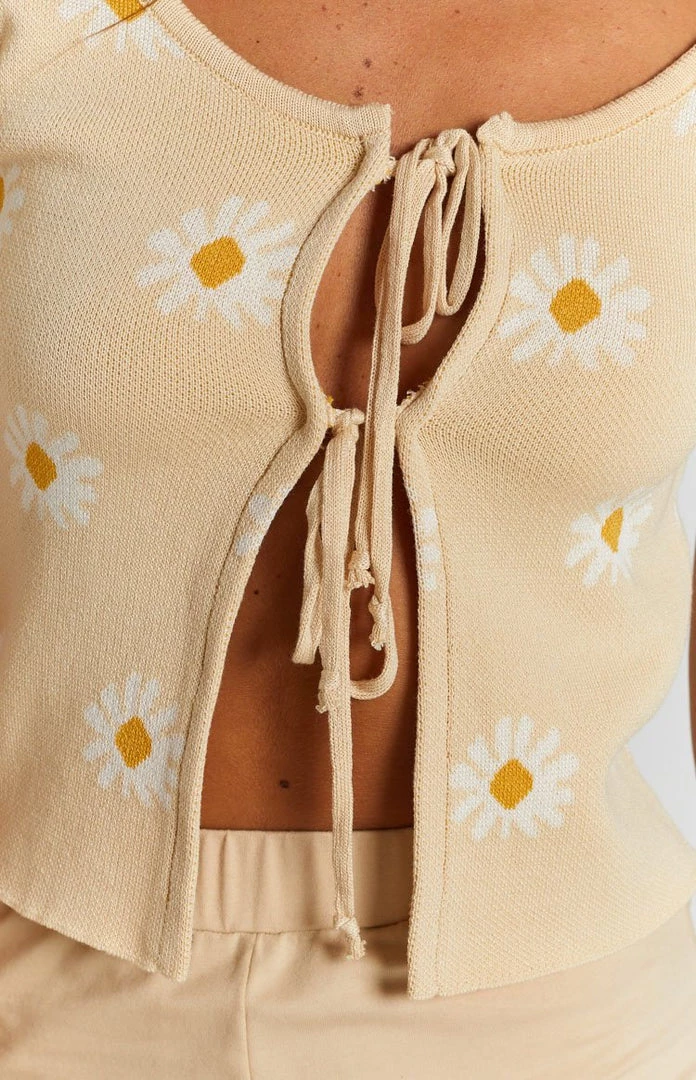 Beginning Boutique Bloom Again Daisy Tie Front Top Yellow
