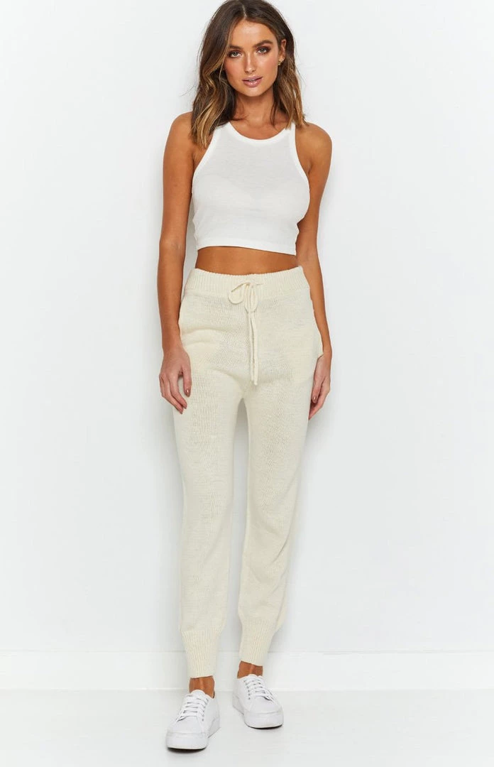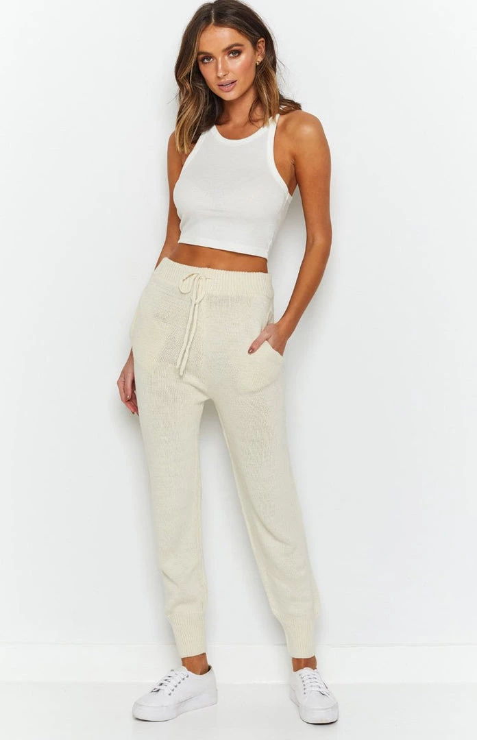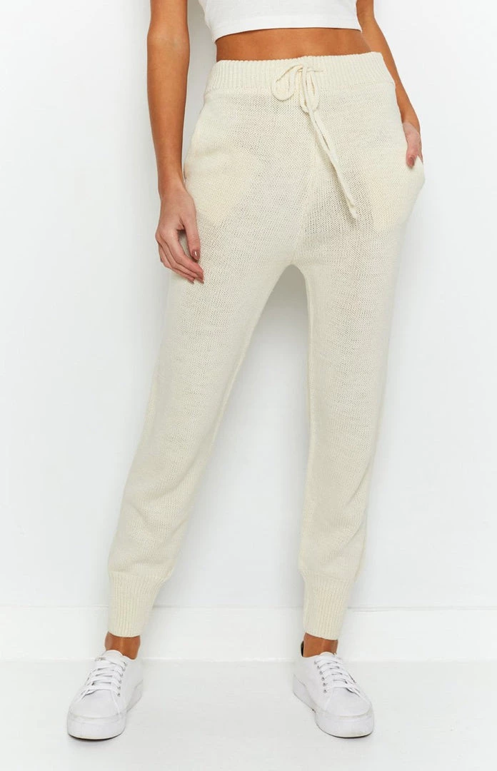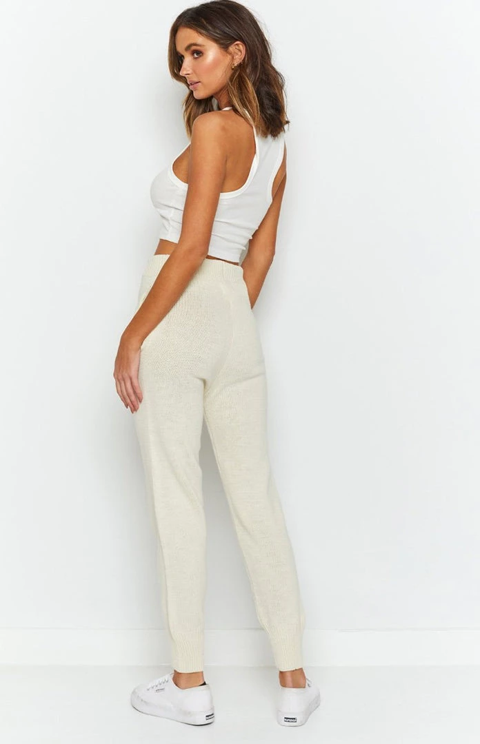 Serving up comfort in our Repose Tracksuit Pants Beige. You’ll never want to take these babies off this season! This piece paired with its matching knit crew makes the perfect snug two-piece set.