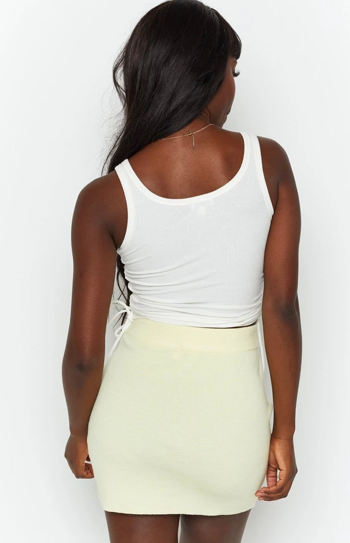 Our new Tell me Knit Skirt in Yellow is a must-have this season! Wear with the matching knit or plain white tee
