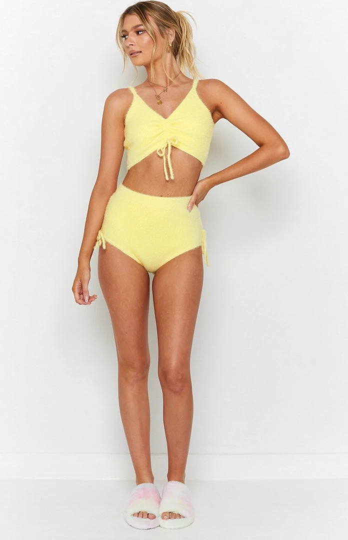 Our Vow to Fluffy Briefs in White are apart of your new cute lazy day looks! Pair with a knit crop top and button up cardi for the most perfect stay at home set yet!