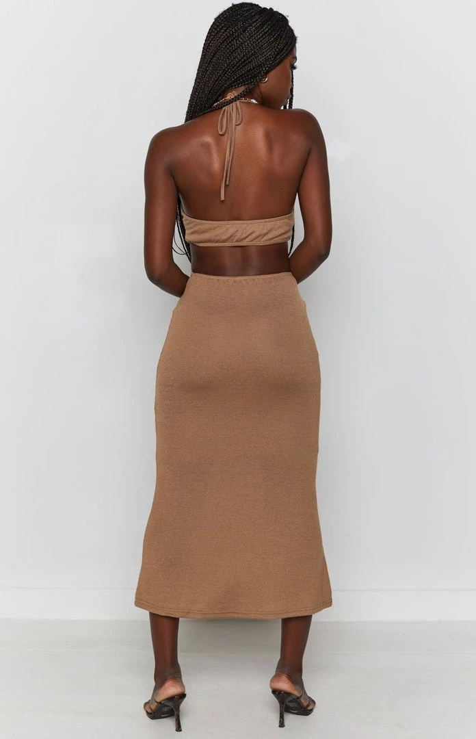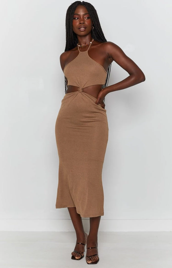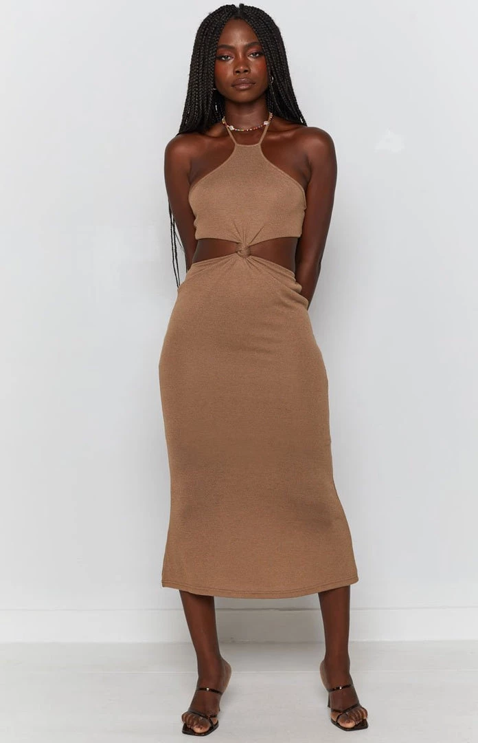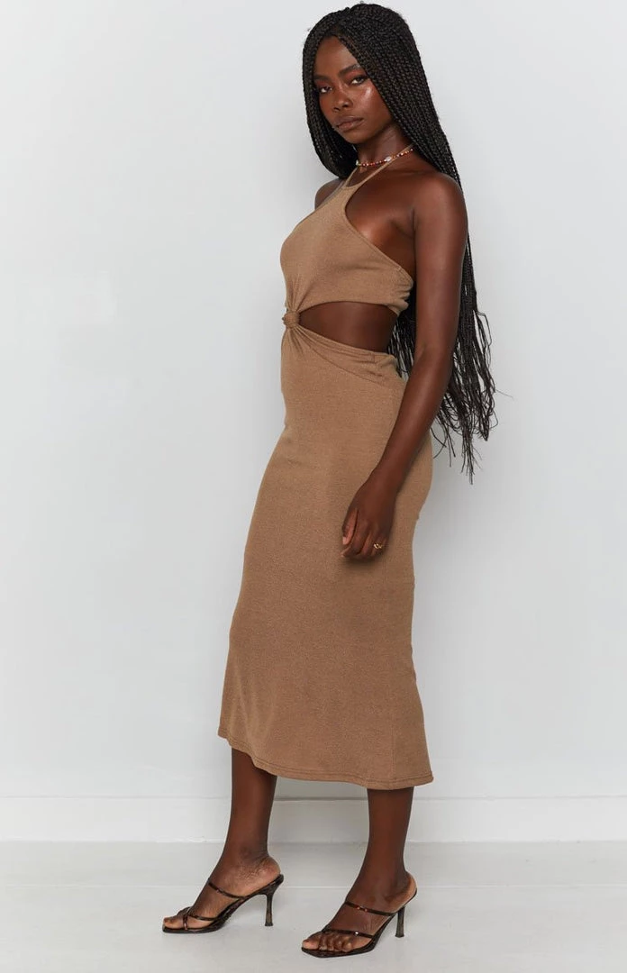 Beginning Boutique Claudia Halter Knit Midi Dress Brown Dresses