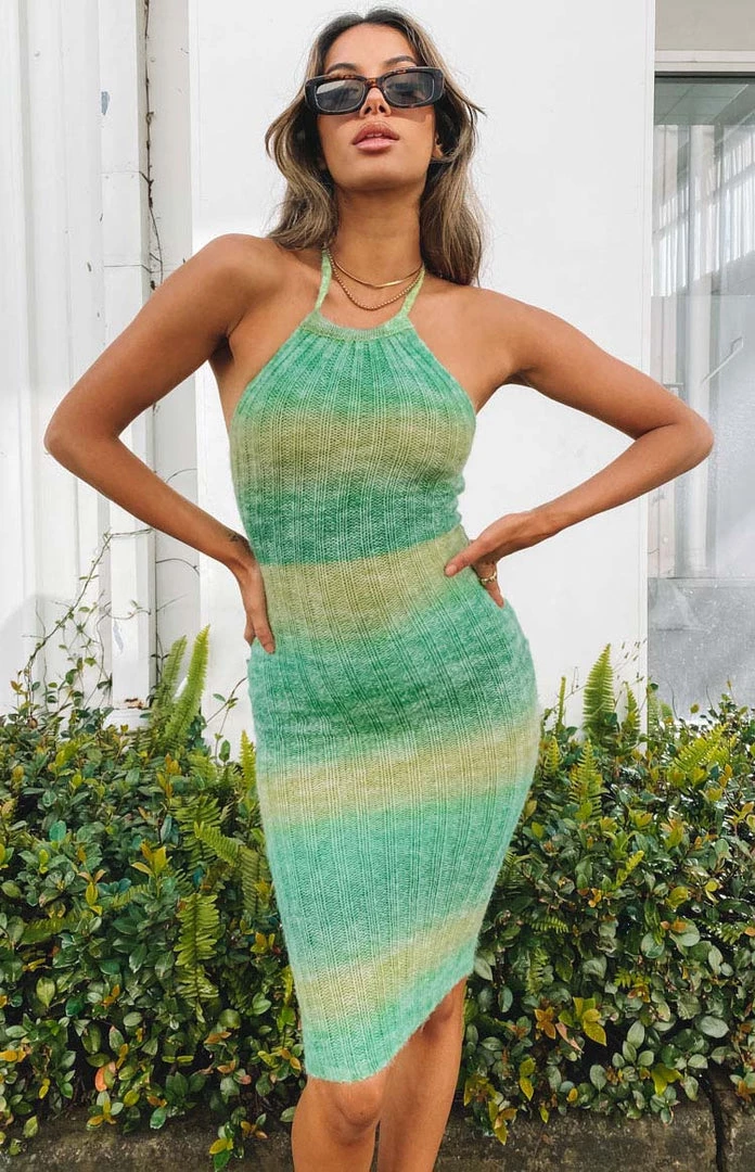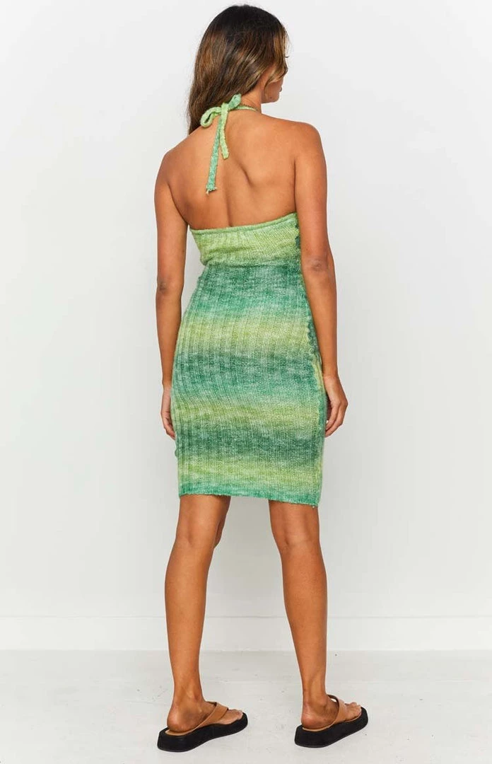 Beginning Boutique Dresses Otto Halter Knitted Dress Green