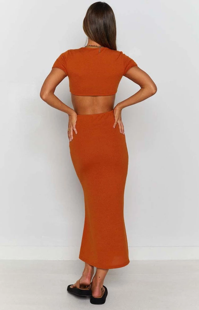 Beginning Boutique Dresses Romania Cut Out Midi Dress Rust