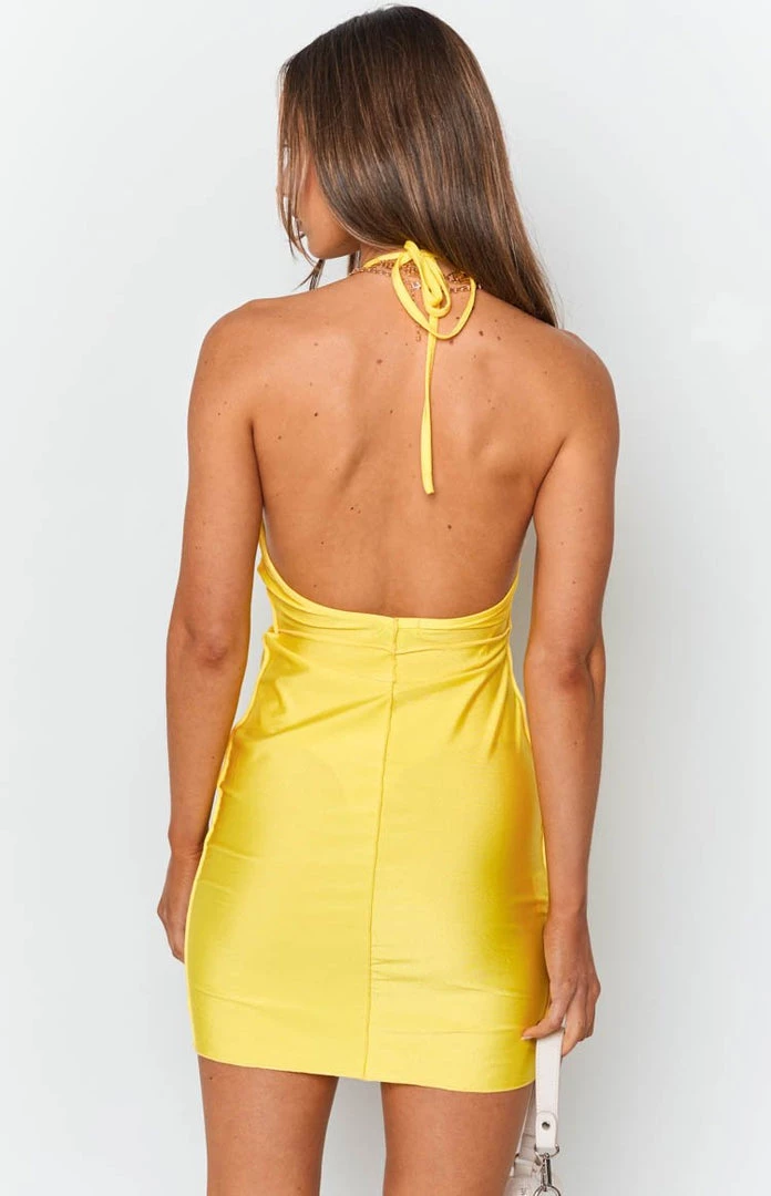 Beginning Boutique Dresses Tillie Halter Mini Dress Yellow