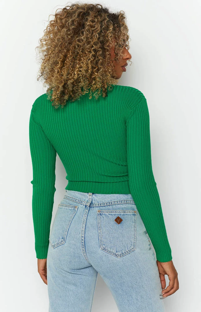 - Turn heads in this bright green long sleeve knit top. Keep it casual by pairing with jeans, boots and a bold white clutch.