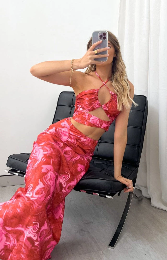- We are totally obsessing over this print! Match with the Ferla Pink Swirl Skirt for the perfect two piece set at your next gal’s long lunch! Or save for the perfect fancy date night look with your beau
