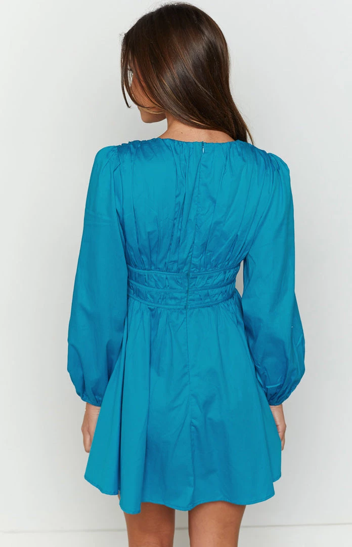 - Blue Long Sleeve Mini Dress