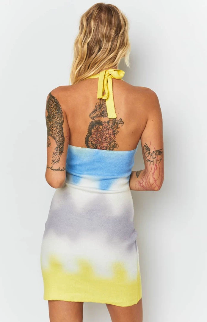 Beginning Boutique Graffiti Halter Mini Dress Yellow Dresses