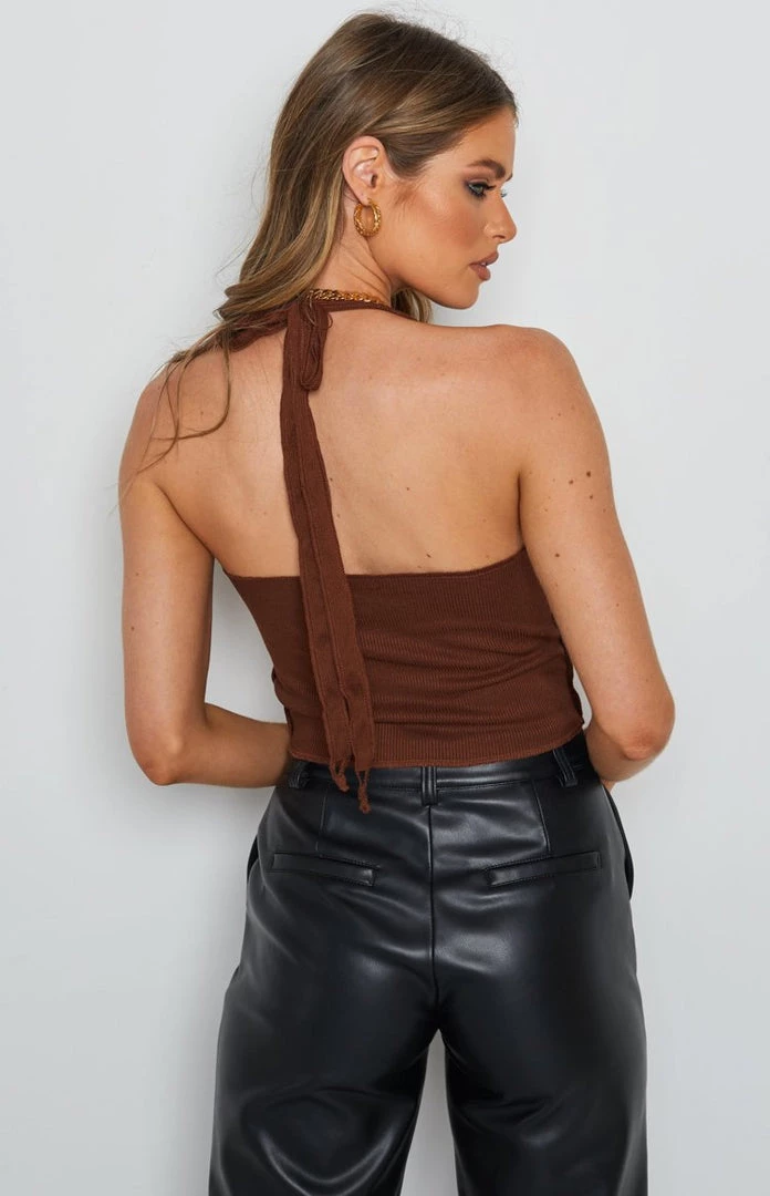 Beginning Boutique Jacinta Lace Up Top Brown Tops