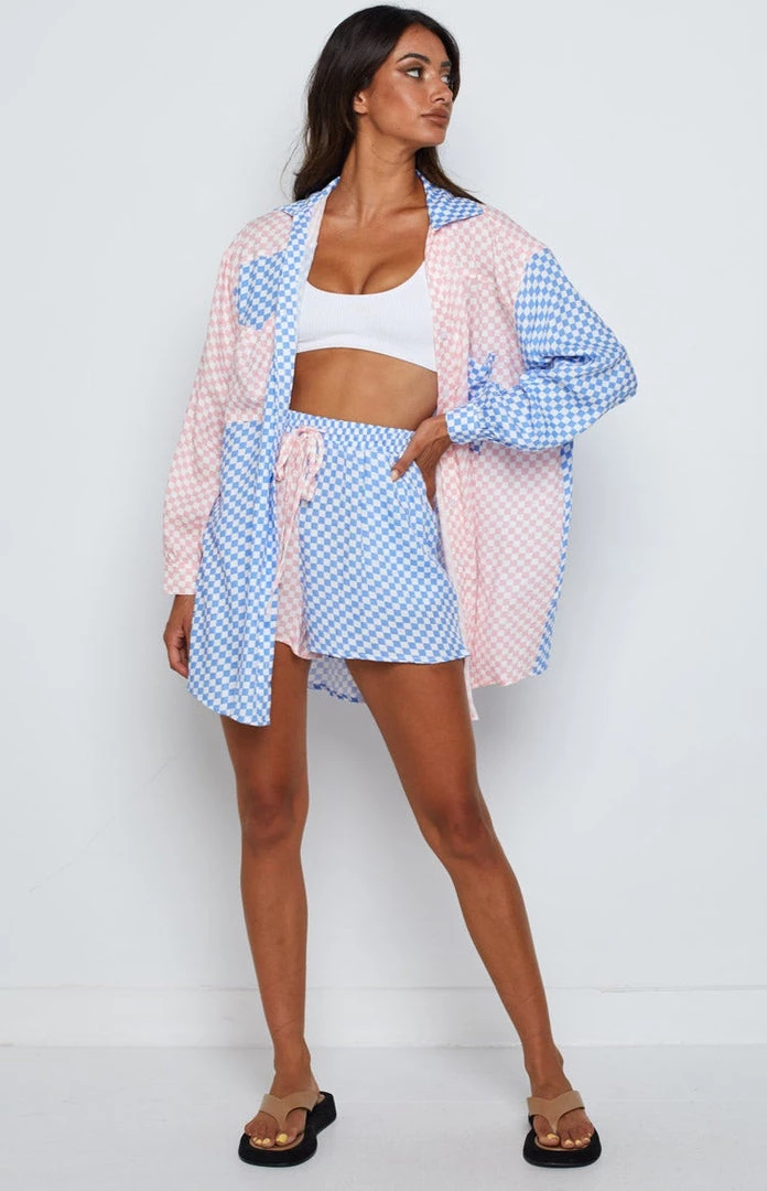 - This shirt creates the ultimate effortless look! Pair with the matching Jamelle Pink Check Shorts for a stylish two-piece set or pop on some white pants for a more simple look!