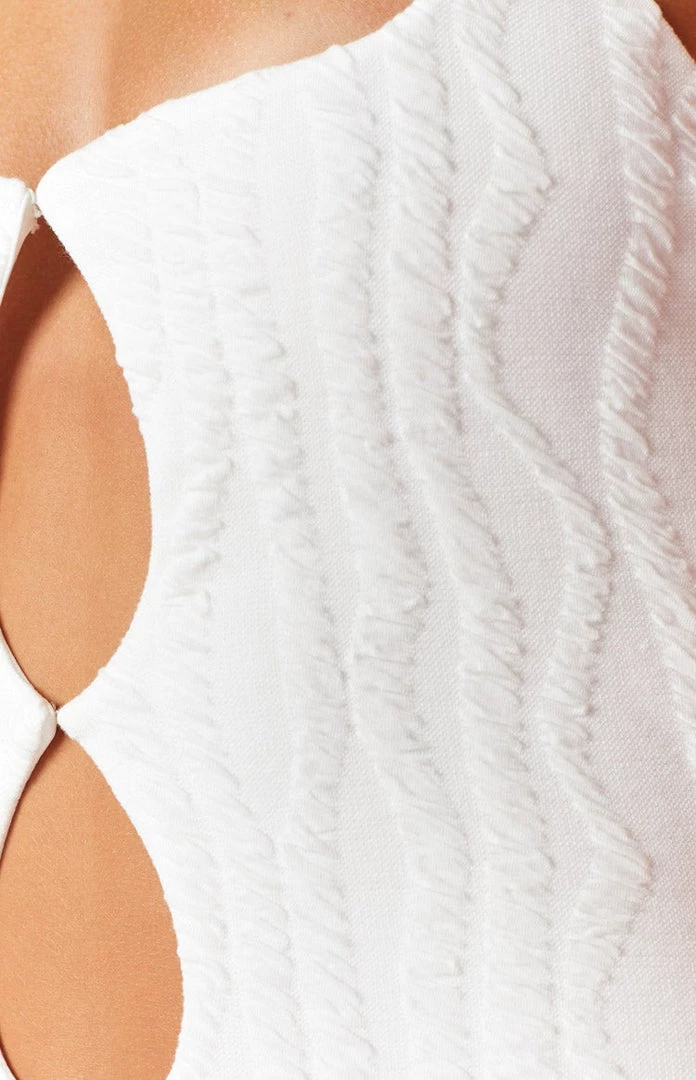 - If you’re in need of a new Little White Dress why not add this one to your wardrobe. The cutouts at the bust add a sexy twist to a basic mini. Simply pair with heels and a mini bag and get ready to dance the night away!