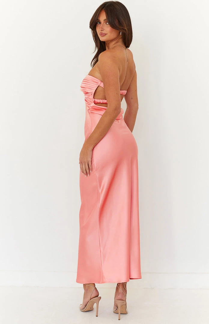 - This divine pink maxi dress will definitely turn heads! Perfect for your next formal occasion, pair it with some nude heels and gold hoops to elevate the look.