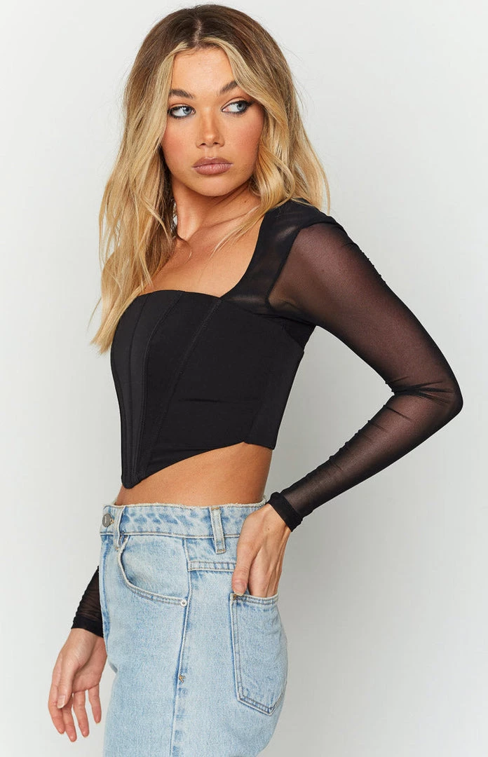 - Black Long Sleeve Corset Top